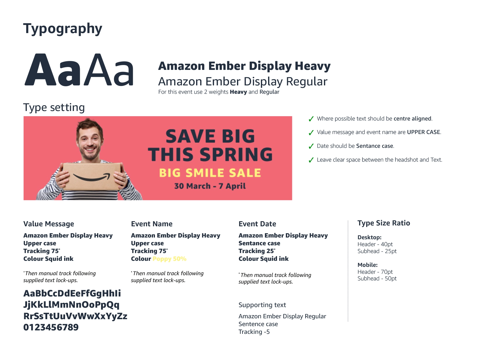 Using the Amazon "Ember" font as a base, this involved trialling various font weights, accents, and stacking combinations.