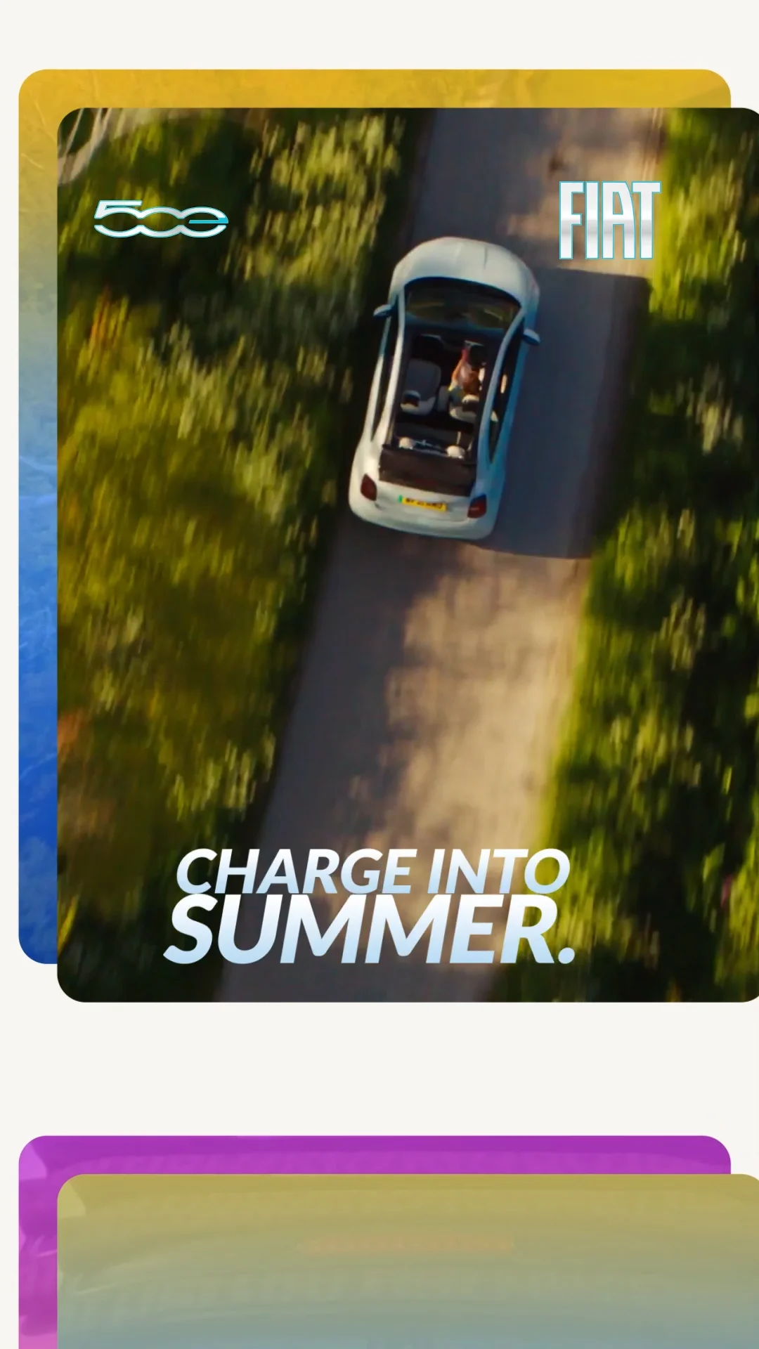 Instead of simply cutting down and re-formatting the TVC for social formats, we wanted to capture the dynamic and fun spirit of the 500e. We spliced clips from the TVC together into animated film reels inspired by the 500's neo-retro aesthetic and the 500e's marriage of vintage pedigree with cutting edge technology.