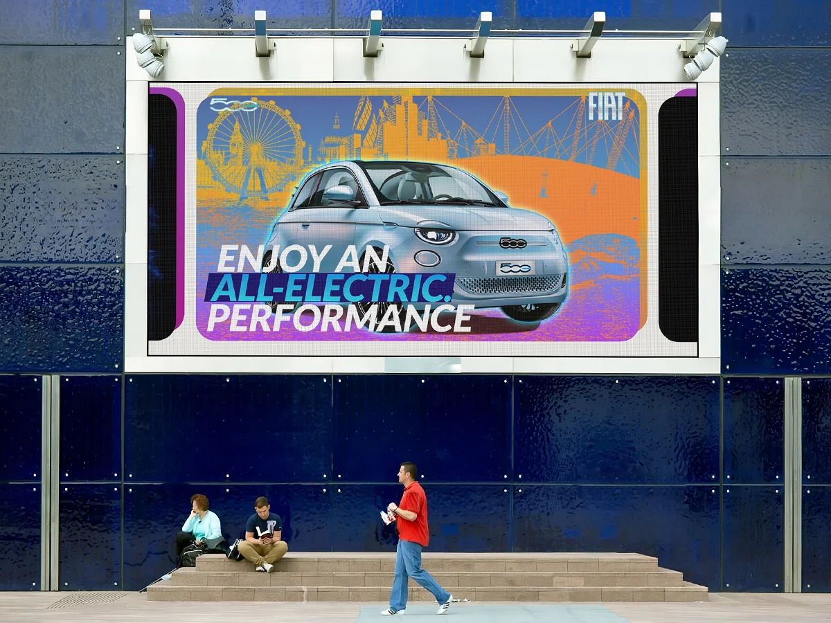 As part of Fiat's ongoing partnership with O2, the campaign was adapted into a full digital out-of-home takeover of the O2 arena in London.