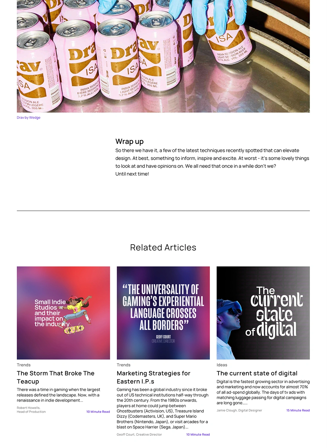 The goal of the blog was to both showcase ICHI as a thought leader with its finger firmly on the pulse of the gaming and creative industries and also provide a place for the team behind the work to share their opinions and ideas and give an insight into what it's like to work at ICHI.