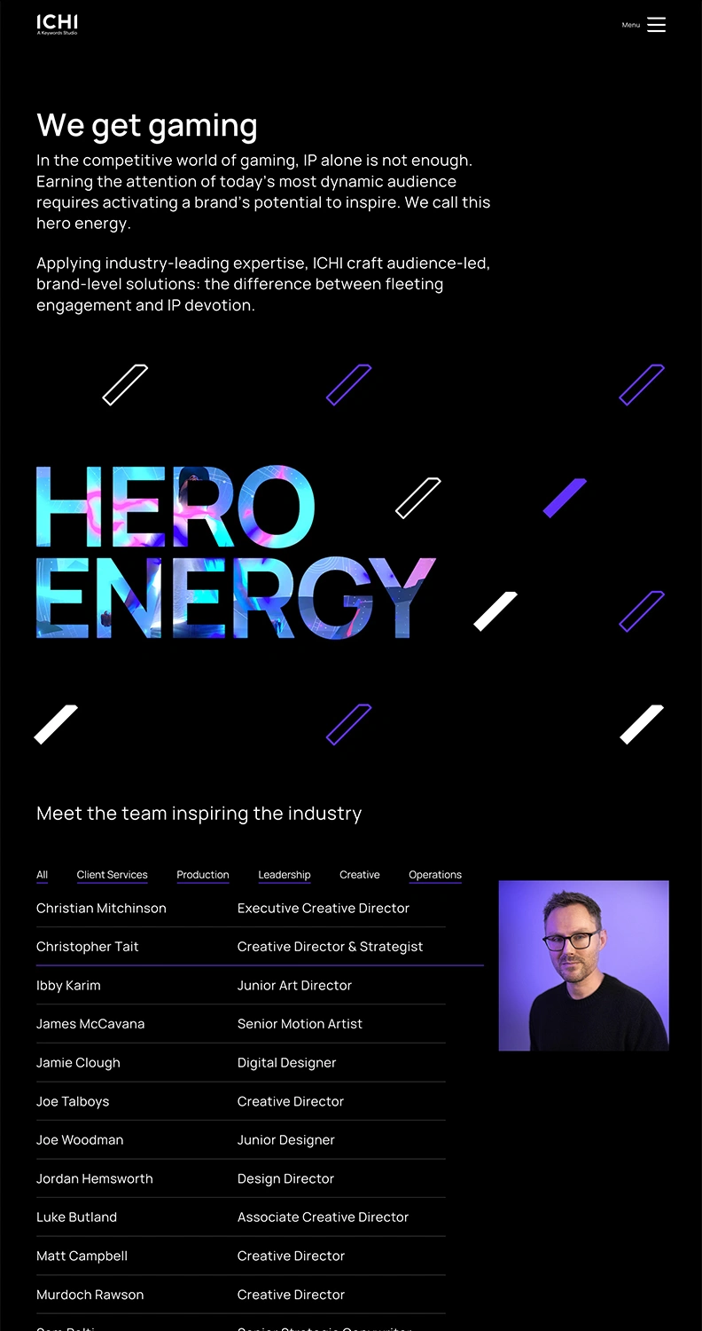 Overall, the new website marked a successful first step in ICHI's transformation to become a leading creative agency in the gaming sector.